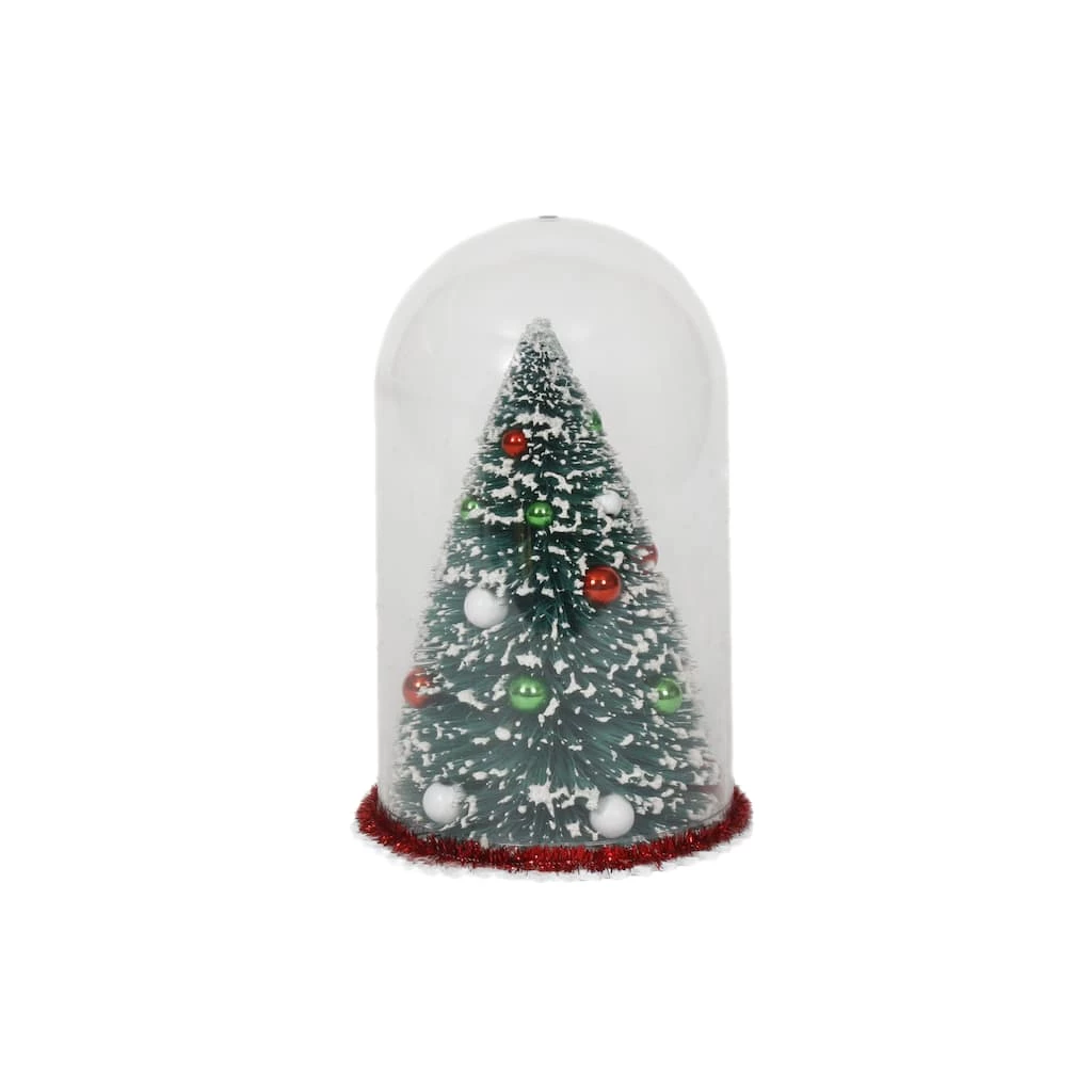 This festive tree is placed inside of a dome and designed with ball ornaments to enhance your holiday dΓ©cor. Put it on your entryway table, desk, or mantle, or any area for added Christmas cheer.