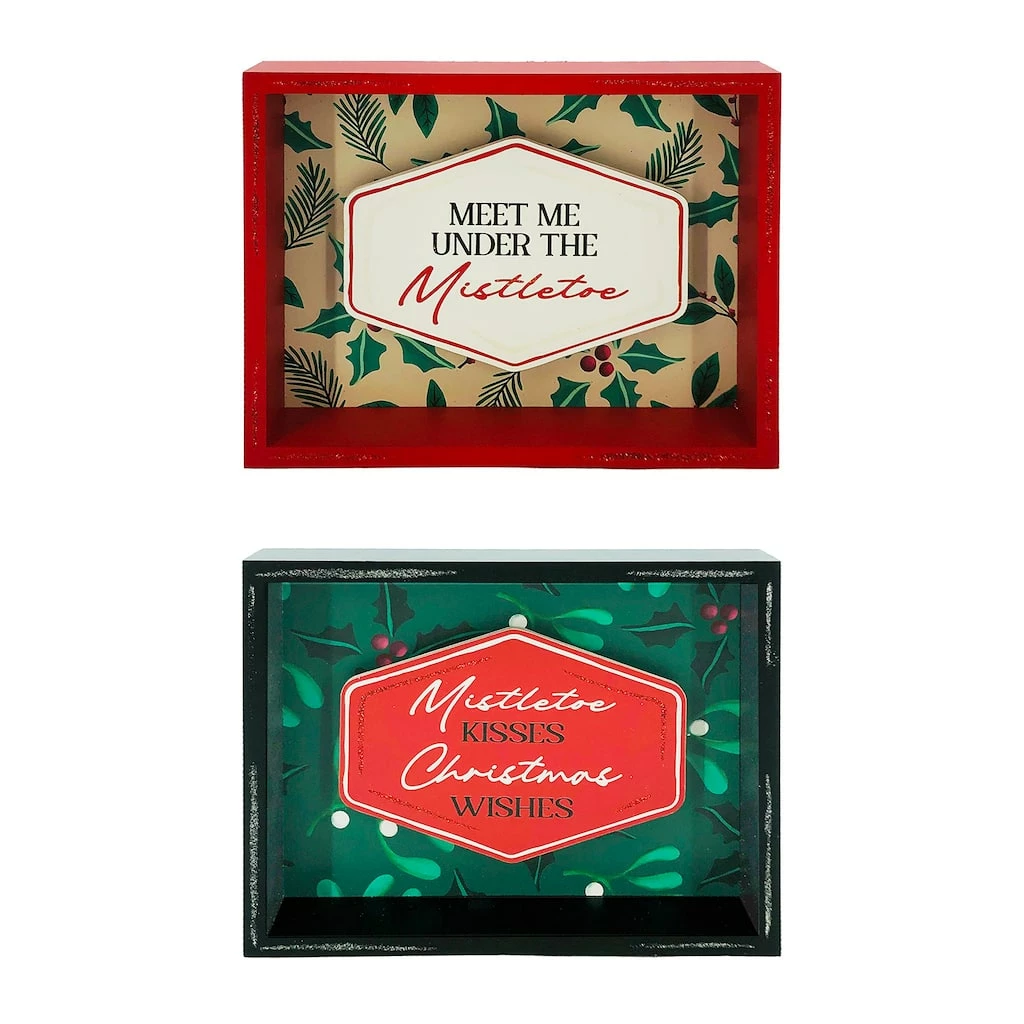 Incorporate this festive mistletoe sign into your holiday dΓ©cor this season. Place it on your entryway table, mantel, desk, or any other area for added Christmas cheer!