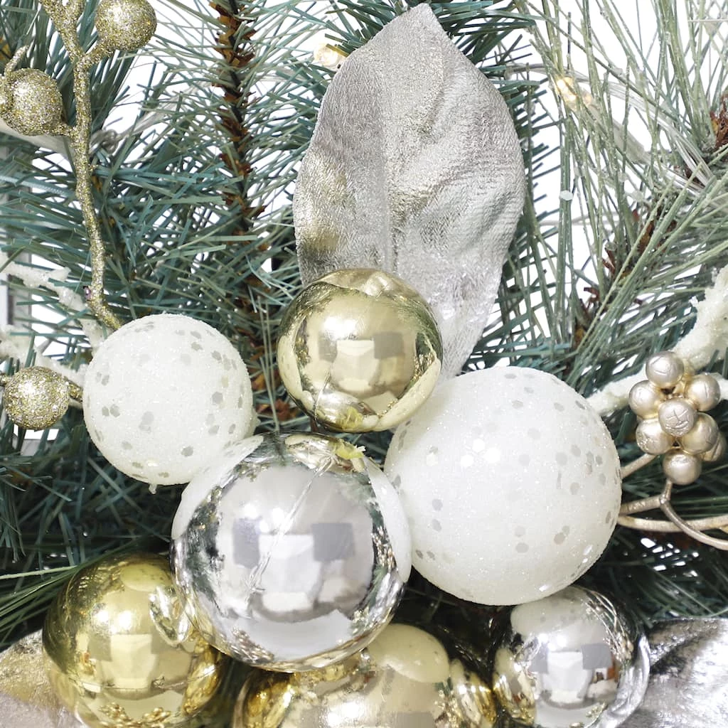 Bring a festive wintry touch to your home this holiday with this lovely lighted wall hanging from Ashland. Featuring a whitewashed window pane holding an arrangement of frosted pine and shimmery ornaments, this piece is sure to add a little Christmas magic to your décor.